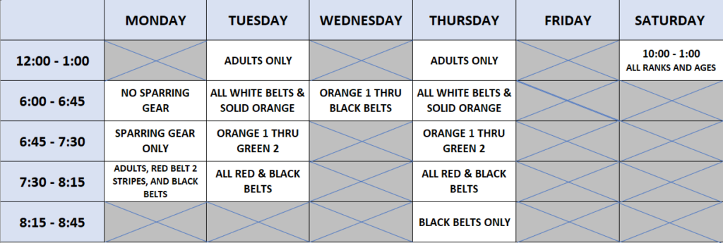 We have multiple classes and options available to suit today’s busy lifestyle. Ideally, we prefer for students to attend two classes per week. However, our night classes are unlimited so our students can fit in classes as much as they want to.